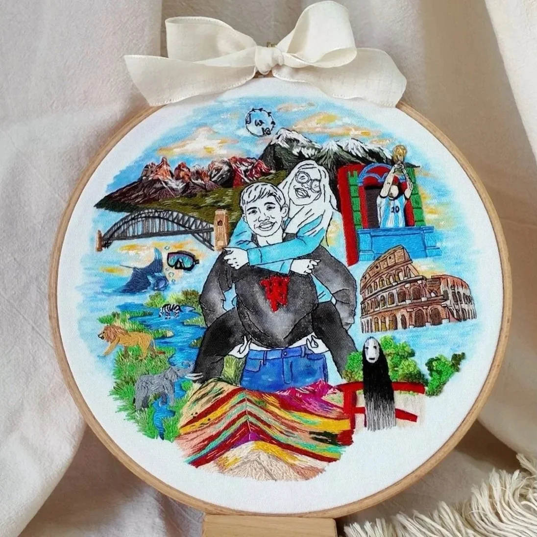 A touching tribute from daughter to mother — this embroidery was gifted before to mum, as a way to say “thank you” for everything she’s done. Each stitch carries love and memory, with flowers blooming around the family to represent growth, change, and the unbreakable bond between them.
