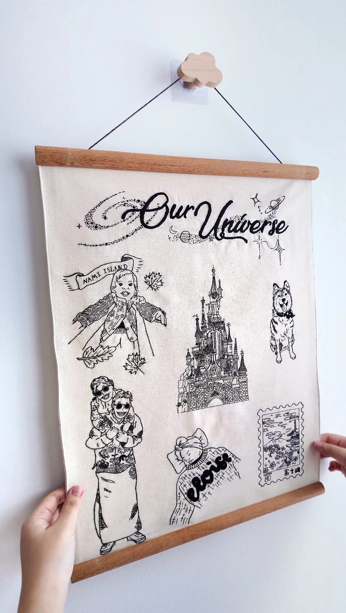 A larger canvas for bigger stories. Thoughtfully designed and delicately embroidered, each piece tells a story through intricate details and soft textures. Whether it’s a celebration of love, a cherished moment, or a heartfelt remembrance, every tapestry is made to hold warmth, meaning, and beauty that lasts for years to come.
